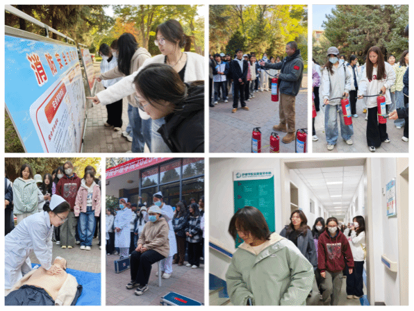 学院成立专项工作组制定《国际减灾安全演练实施方案》,实践教学中心联合消防科提前完成场地布置和用物准备,各班级提前部署,明确疏散通道。