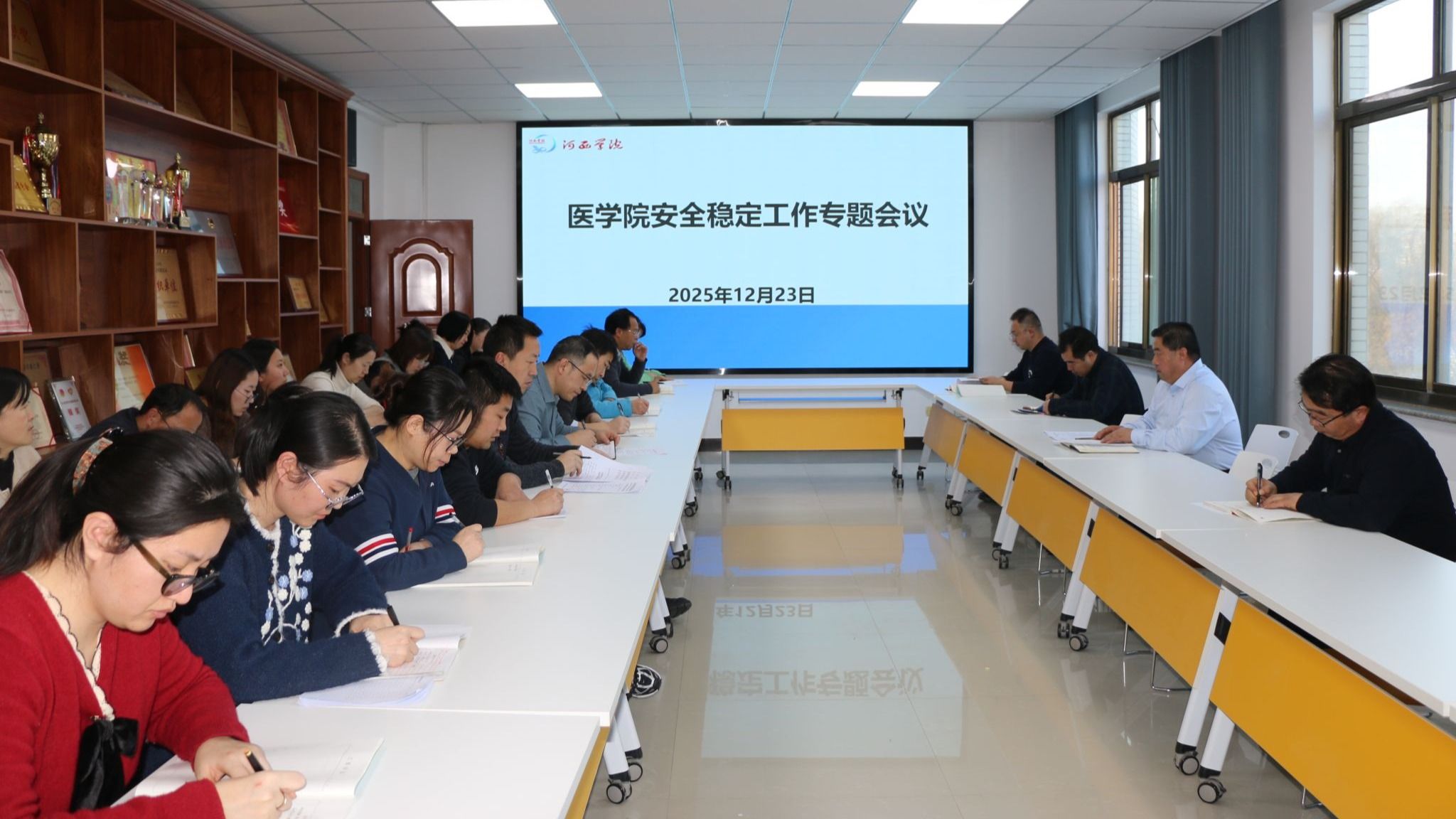 12月23日,医学院召开第四季度安全稳定专题会议暨元旦节前安全检查工作安排会。学院领导、各科室负责人、全体班主任和辅导员参加。